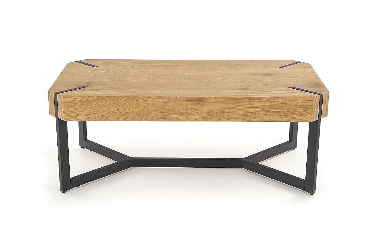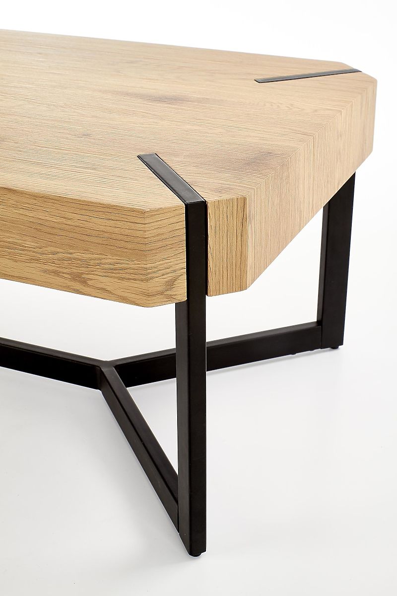 Industrieller Couchtisch mit goldener Eiche und schwarzem Stahl. .. mehr