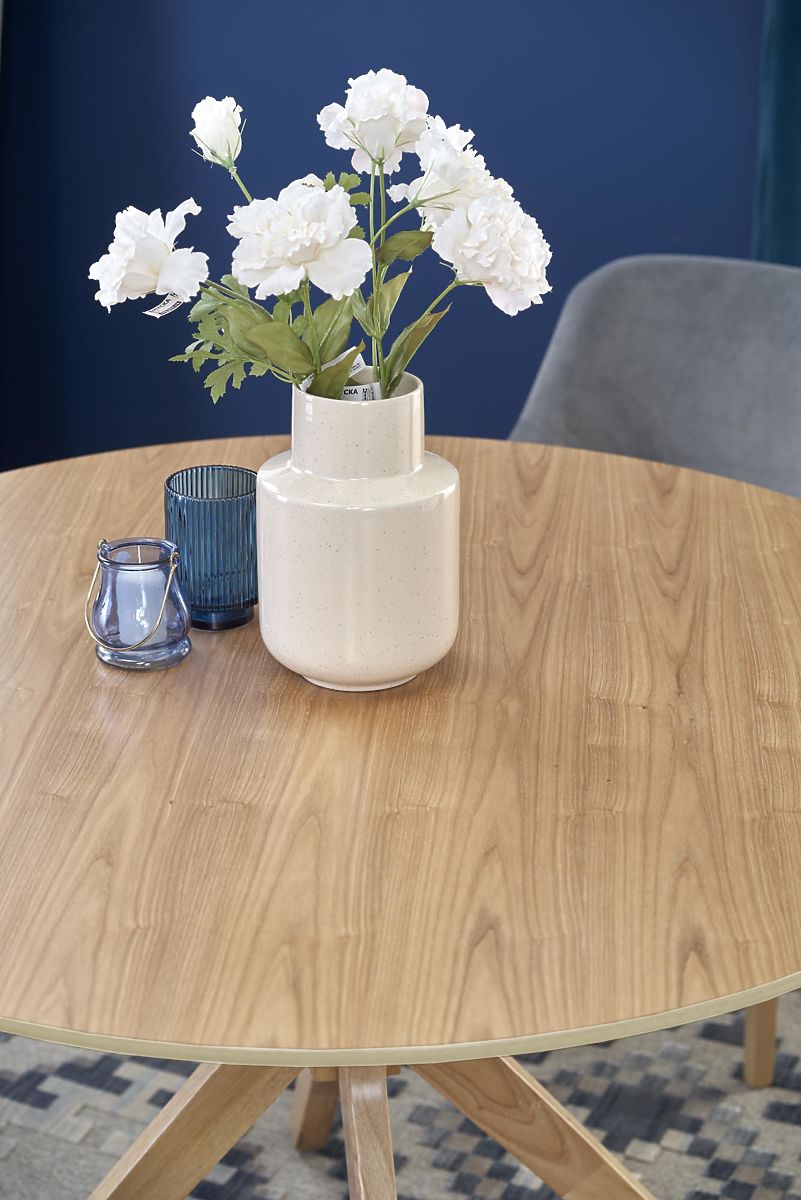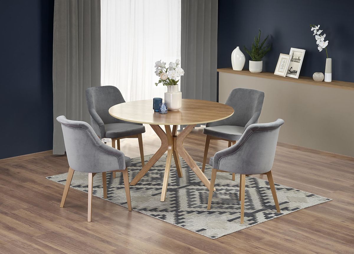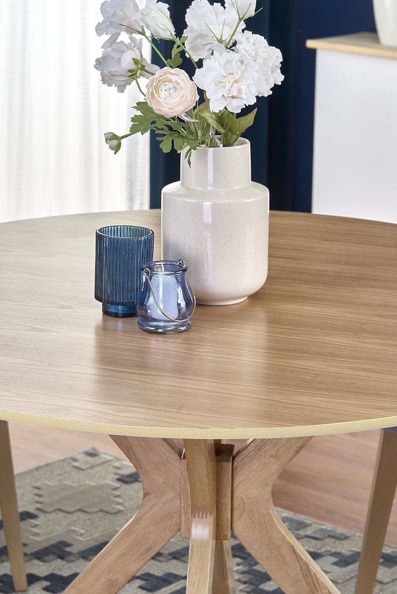 Runder Esstisch mit modernem Design und Massivholzbeinen. .. mehr