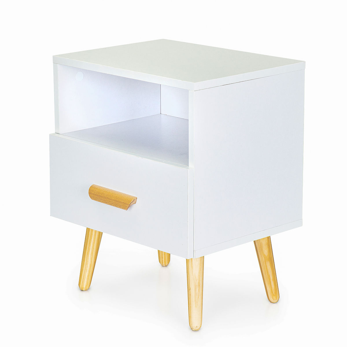 Der Schrank besteht aus einer geräumigen Schublade und einem Regal, in dem Sie Bücher, Zeitschriften, Dokumente oder andere kleine Gegenstände aufbewahren können.