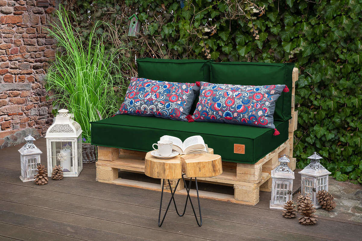 Das grüne Kissenset für Palettenmöbel ist eine tolle Wahl, um die Sitzgelegenheit auf der Terrasse, dem Balkon oder im Garten ganz einfach zu verbessern. Ideal vorbereitet für Europalettenmaße. Eine spezielle Nähtechnologie sorgt für UV-Beständigkeit und Wasserbeständigkeit des Materials, wodurch das Material stark bleibt und nicht ausbleicht.