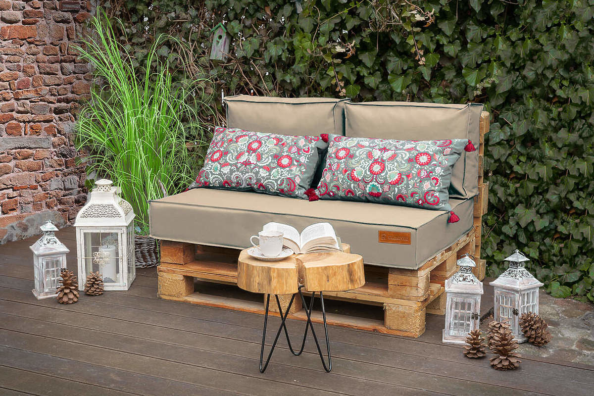 Das beige Kissenset für Palettenmöbel ist eine tolle Wahl, um die Sitzgelegenheit auf der Terrasse, dem Balkon oder im Garten ganz einfach zu verbessern. Ideal vorbereitet für Europalettenmaße. Eine spezielle Nähtechnologie sorgt für UV-Beständigkeit und Wasserbeständigkeit des Materials, wodurch das Material stark bleibt und nicht ausbleicht.
