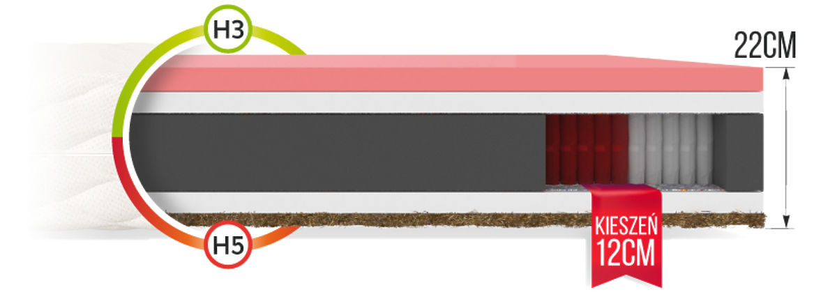 Die Federn sind mit der NanoHard- Technologie hergestellt, die Festigkeit garantiert und die Lebensdauer verlängert. Die zweite Schicht besteht aus strapazierfähigem und flexiblem Purschaum, der für eine gute Körperdämpfung und eine hochwertige Unterstützung der Wirbelsäule sorgt. Ihr Körper passt sich perfekt an die Matratze an und Sie wachen morgens ausgeruht und frisch auf. Darüber hinaus sorgt der thermoplastische VISCO-Schaum dank Formgedächtnis für unübertroffenen Komfort und Bequemlichkeit. Es bildet die Körperform perfekt nach und dann kehrt in seinen ursprünglichen Zustand zurück.