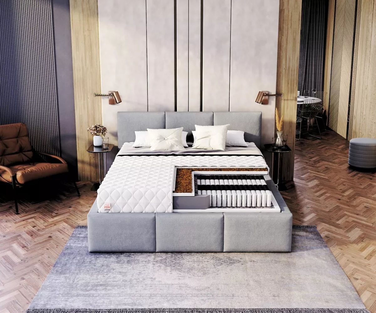 Die Matratze FAMILY ist dank unterschiedlicher Härtegrade auf jeder Seite der Matratze ein doppelseitiges Modell und lässt sich daher problemlos an Ihre persönlichen Vorlieben anpassen. Eine Seite der Matratze besteht aus PUR-Schaum und einer Kokoseinlage, auf der anderen Seite befindet sich eine PUR-Schaum Schicht. Der flexible Schaumstoff ist resistent gegen Verformungen und verhindert die Entwicklung von Milben und anderen Mikroorganismen. Natürliche Kokosnuss ist atmungsaktiv und hat antiallergische Eigenschaften. Zwischen Federn und Schaumstoff wurde ein Trennmaterial eingelegt. Dabei handelt es sich um einen Naturfilz, der die Lebensdauer der Matratze deutlich verlängern und ihre Struktur stärken kann. Die verwendeten Materialien sind sicher, langlebig und verschleißfest. Dadurch wird die FAMILY-Matratze viele Jahre lang ihre Dienste leisten.