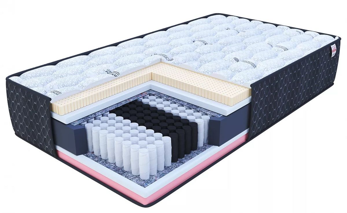 Auf einer Seite der Matratze befindet sich eine sehr flexible Latexschicht , die den Komfort verbessert, und dank der perforierten Struktur ist sie hervorragend atmungsaktiv . Die nächste Schicht besteht aus T25-Pur-Schaum , dessen Vorteile eine hohe Verformungsbeständigkeit, Elastizität, Atmungsaktivität und die Stabilisierung des Körpers im Ruhezustand sind. Zwischen den Federn und dem T25-Pur-Schaum wurde ein Trennmaterial eingelegt. Dabei handelt es sich um einen Naturfilz, der die Lebensdauer der Matratze deutlich verlängern und ihre Struktur stärken kann. Der Schlafkomfort wird durch den thermoplastischen VISCO-Schaumstoff , der sich auf der anderen Seite der Matratze befindet, enorm erhöht. Durch den Einfluss der Körpertemperatur und des Körpergewichts werden die natürlichen Rundungen des Körpers perfekt nachgebildet , wodurch die korrekte Unterstützung der gesamten Figur gewährleistet wird. VISCO und Federn sind wiederum durch eine Schicht aus strapazierfähigem T25-Purschaum und einem natürlichen Trennmaterial getrennt.