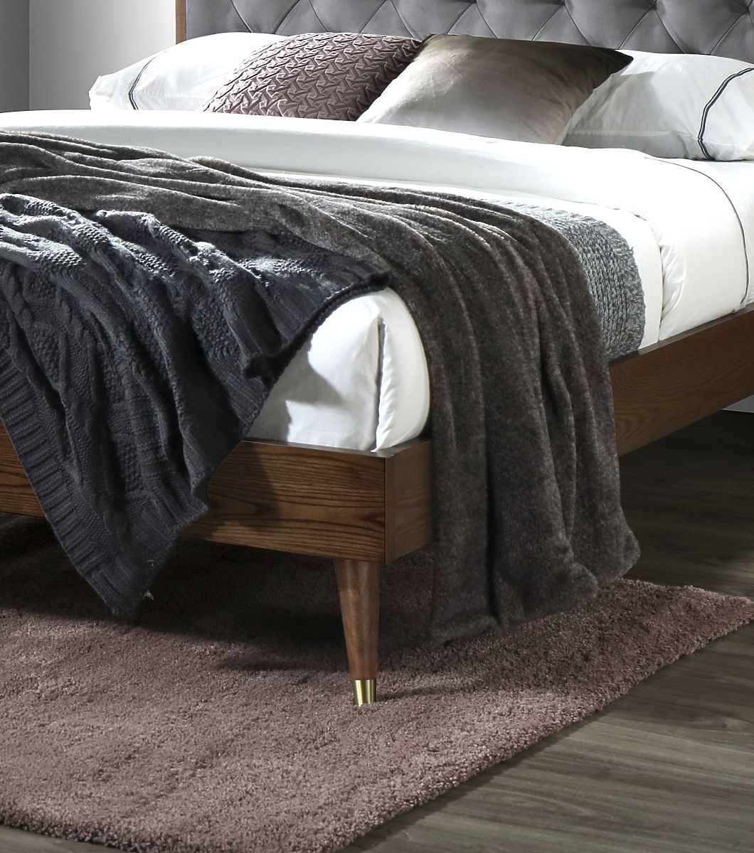 Das aus erstklassigen Materialien wie Samtstoff für die Polsterung und der Konstruktion aus massivem Kautschukholz gefertigte Bett CASSIDY bietet nicht nur ein schönes Design, sondern auch hohe Qualität und lange Lebensdauer. Der Samtstoff für die Polsterung fühlt sich elegant und weich an und erhöht so den Gesamtkomfort des Bettes.