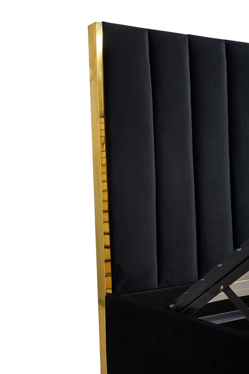 Das Polsterbett PALAZZO ist eine Kombination aus Luxus und Funktionalität. Mit den Maßen 160x200 cm bietet er ausreichend Platz für zwei Personen zum bequemen Schlafen und bietet zudem dank des Hebegitters einen versteckten Stauraum. Die schwarze Polsterung des Palazzo-Bettes verleiht Ihrem Schlafzimmer einen eleganten und modernen Look. Das hohe Palazzo-Kopfteil sorgt für eine luxuriöse Atmosphäre und wird zum Blickfang in Ihrem Interieur.