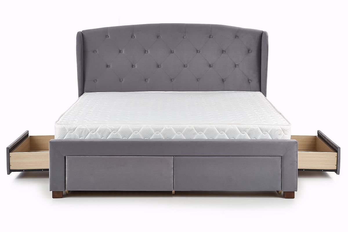 Das Polsterbett Sabrina verleiht Ihrem Schlafzimmer eine luxuriöse Atmosphäre und Funktionalität. Mit den Maßen 160x200 cm bietet es ausreichend Platz für einen angenehmen Schlaf und bietet dank integrierter Schubladen gleichzeitig Stauraum. Die dunkelgraue Polsterung des Sabrina- Bettes sorgt für einen eleganten und modernen Look. Der Vorteil ist der hochwertige Lattenrost , der im Paket enthalten ist.