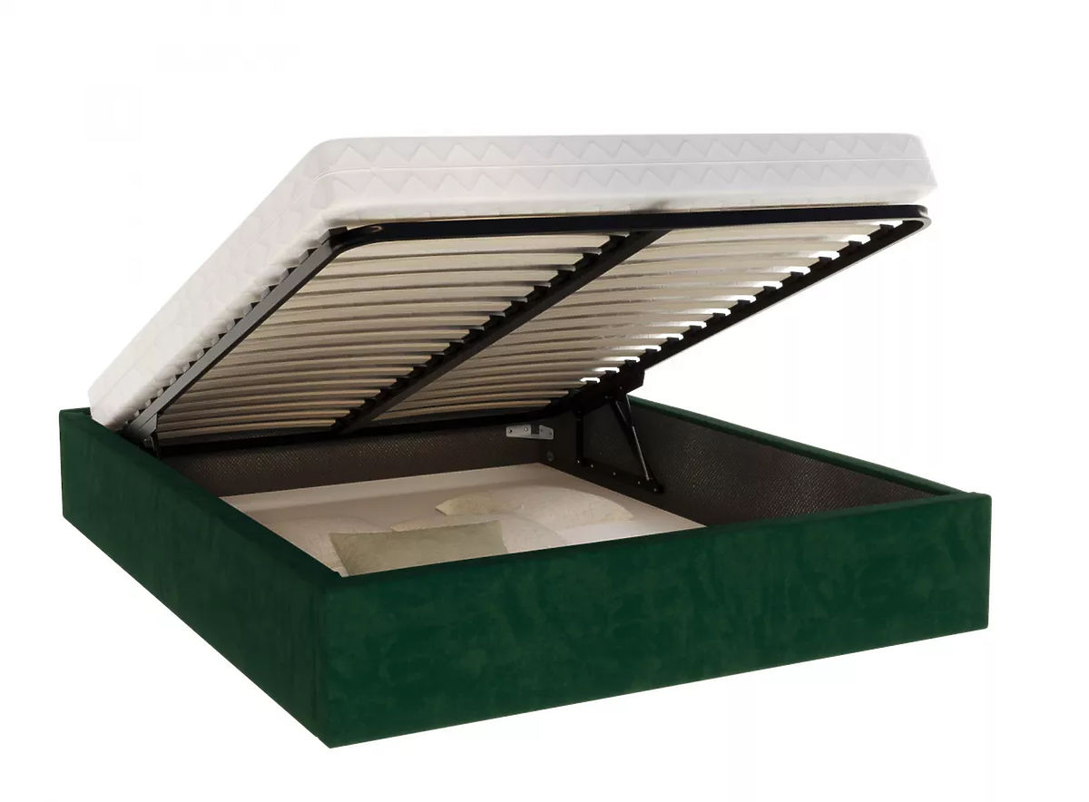 Um die Funktionalität des Bettes zu erhöhen, wird ein Hebegitter hinzugefügt. Zwei Hubkolben ermöglichen ein einfaches Anheben der Matratze und verbessern den Zugang zum Stauraum unter dem Bett. Der richtige Abstand der Latten im Bettrahmen trägt dazu bei, dass die Matratze optimal belüftet ist und sich nicht verformt . Das Bett ist so konzipiert, dass sich Feuchtigkeit und Hausstaubmilben nicht festsetzen.
