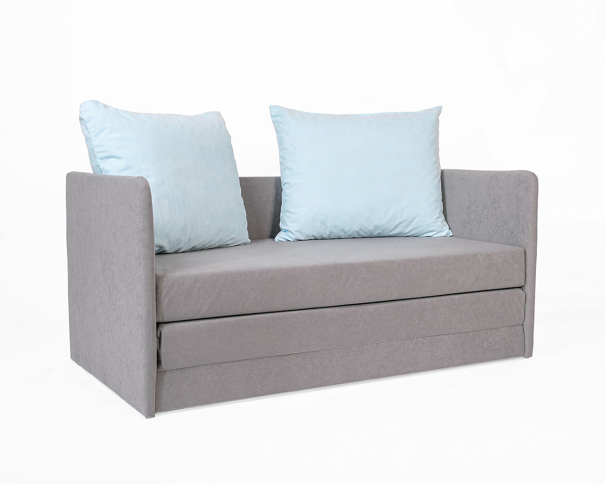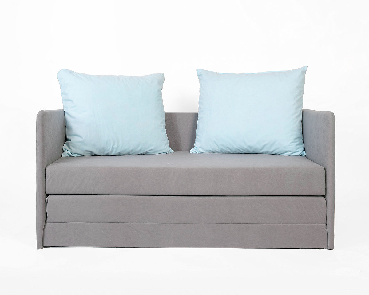 Das schöne und praktische dunkelgraue Sofa Jack mit hellblauen Kissen passt in jedes Jungenzimmer.