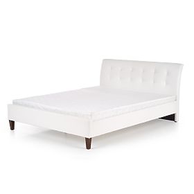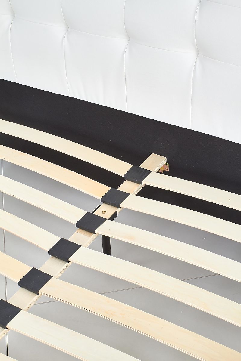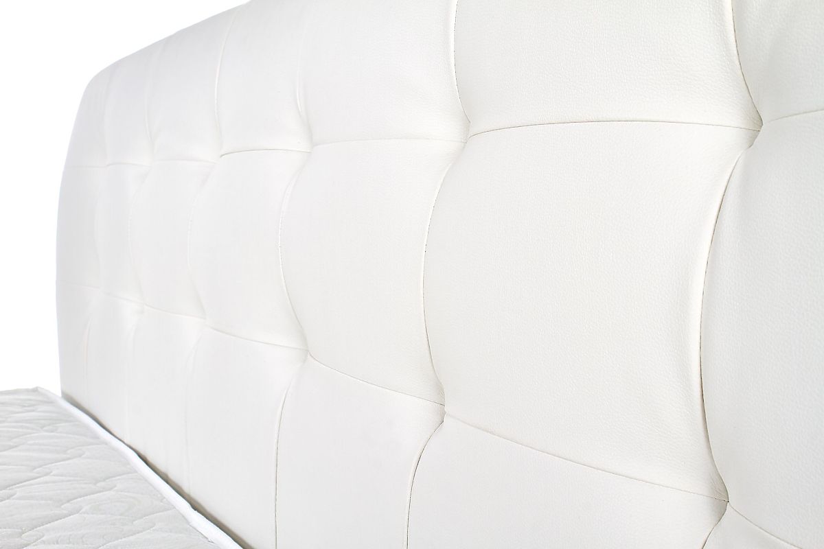 Bett aus Kunstleder und Massivholz in Weiß. .. mehr