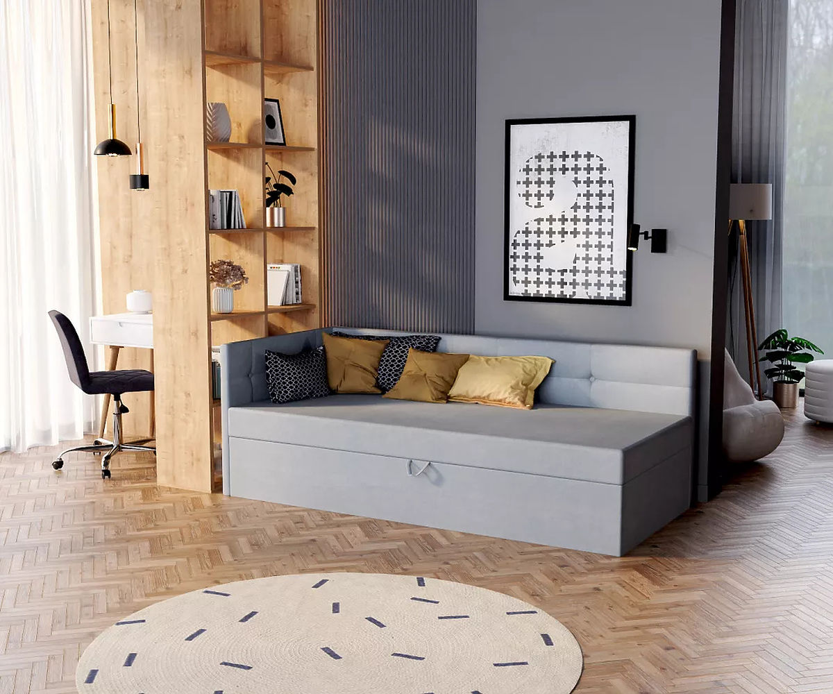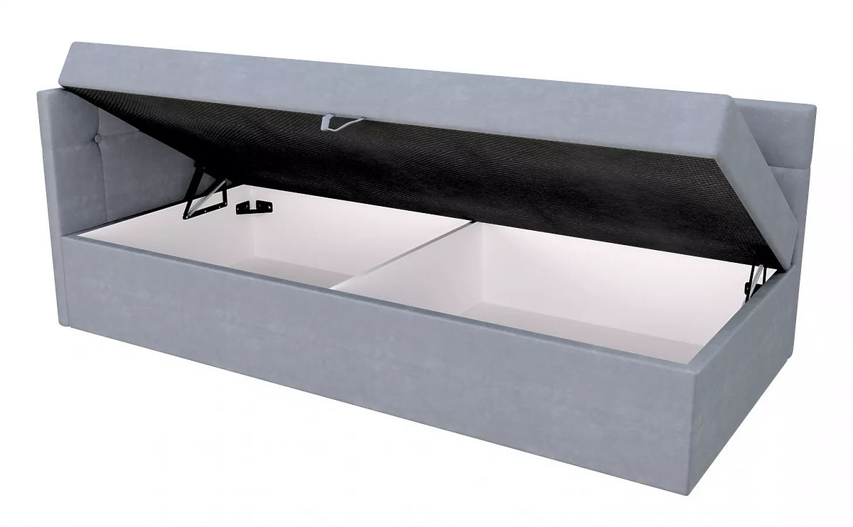 Das moderne gepolsterte Bett BILLY mit den Maßen 200 x 90 cm ist eine hervorragende Wahl für diejenigen, die stilvolle Möbel für ihr Schlafzimmer suchen. Neben einer hochwertigen Schaumstoffmatratze mit praktischem Griff zum einfachen Anheben bietet das Bett auch Stauraum unter dem Bett. Diese Funktion ermöglicht die Aufbewahrung verschiedener Schlafzimmeraccessoires und trägt dazu bei, das Schlafzimmer ordentlich zu halten.