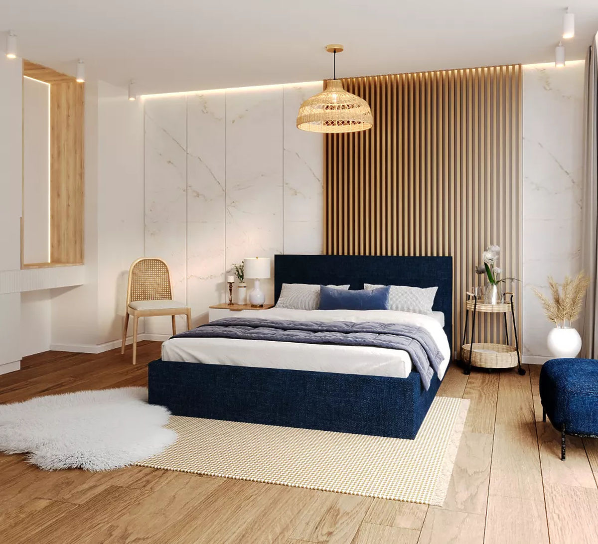 Die Verwendung hochwertiger Möbelplatten bei der Konstruktion des Bettes erhöht seine Festigkeit und Haltbarkeit. Das bedeutet, dass das Bett Belastungen und Druck standhält, was für Sicherheit und Komfort beim Schlafen von entscheidender Bedeutung ist. Die Kombination aus Hubgitter und Hubkolben zur Schaffung nützlichen Stauraums unter dem Bett ist eine tolle Lösung für Schlafzimmer mit begrenztem Stauraum. Mit dieser praktischen Funktion können Sie den verfügbaren Platz in Ihrem Schlafzimmer effizienter und organisierter nutzen.