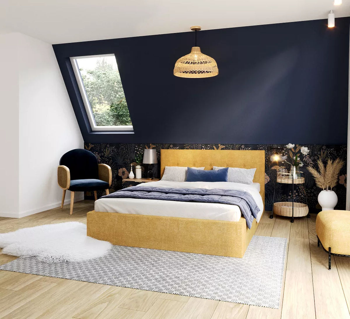 Das 160 x 200 cm große Polsterbett TULSA in Gelb ist eine wirklich hervorragende Wahl für Ihr Zimmer. Dieses Bett bringt eine beeindruckende Kombination aus Eleganz und Komfort in den Raum und ist perfekt für Paare, die einen geräumigen und stilvollen Ort zum Entspannen suchen. Die Farbe Gelb wird mit Freude, Optimismus und Energie assoziiert. Es schafft eine sonnige und frische Atmosphäre, die Ihrem Raum Leben einhauchen kann und gleichzeitig eine warme und positive Note verleiht.