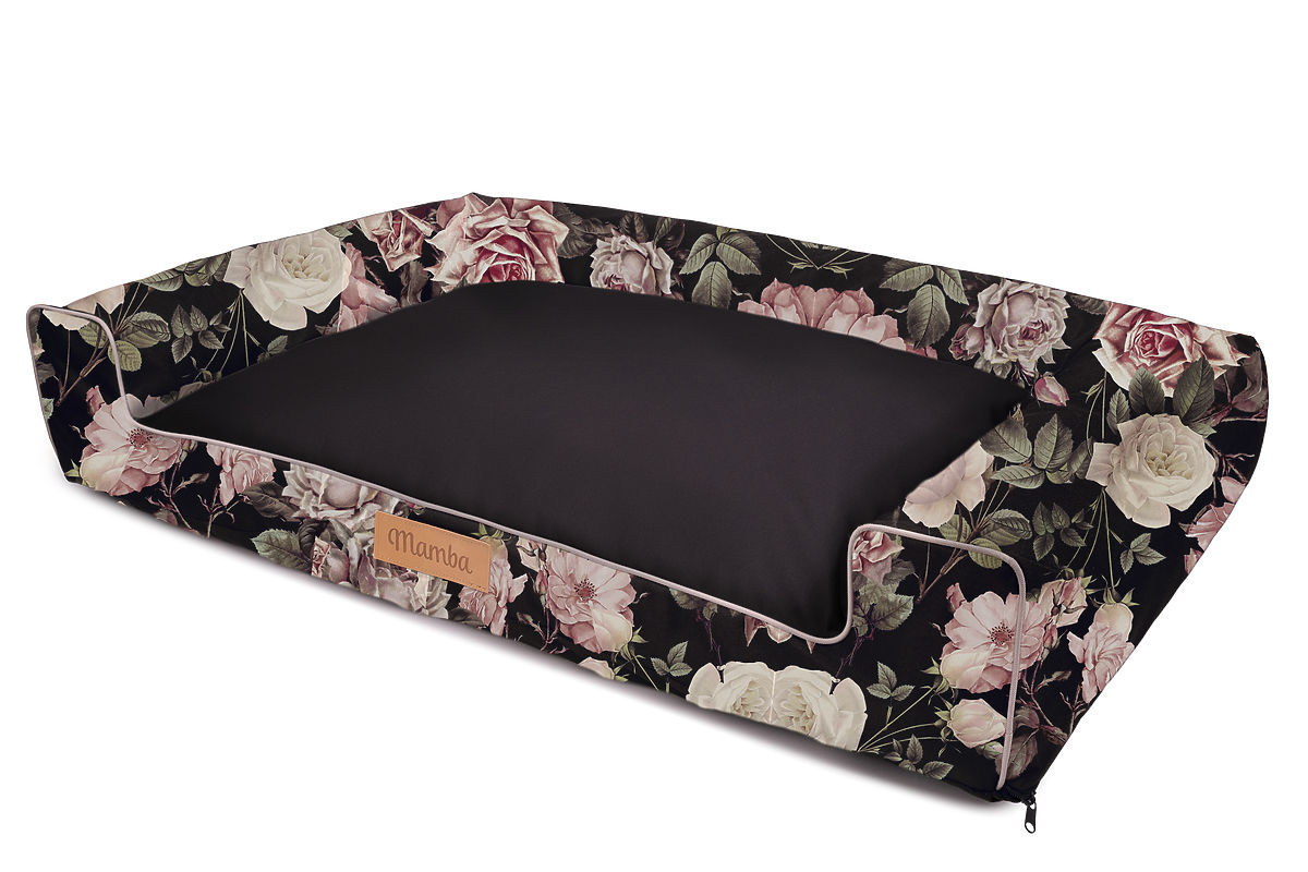 Jeder wünscht sich einen bequemen Ort zum Ausruhen oder Entspannen. Gönnen Sie Ihrem Vierbeiner ein weiches und sehr geräumiges Bett , das sich durch ein wunderschönes Rosenmotiv auf schwarzem Grund und hochwertiges Material mit wasserfesten Eigenschaften auszeichnet.