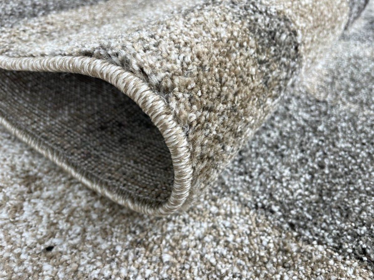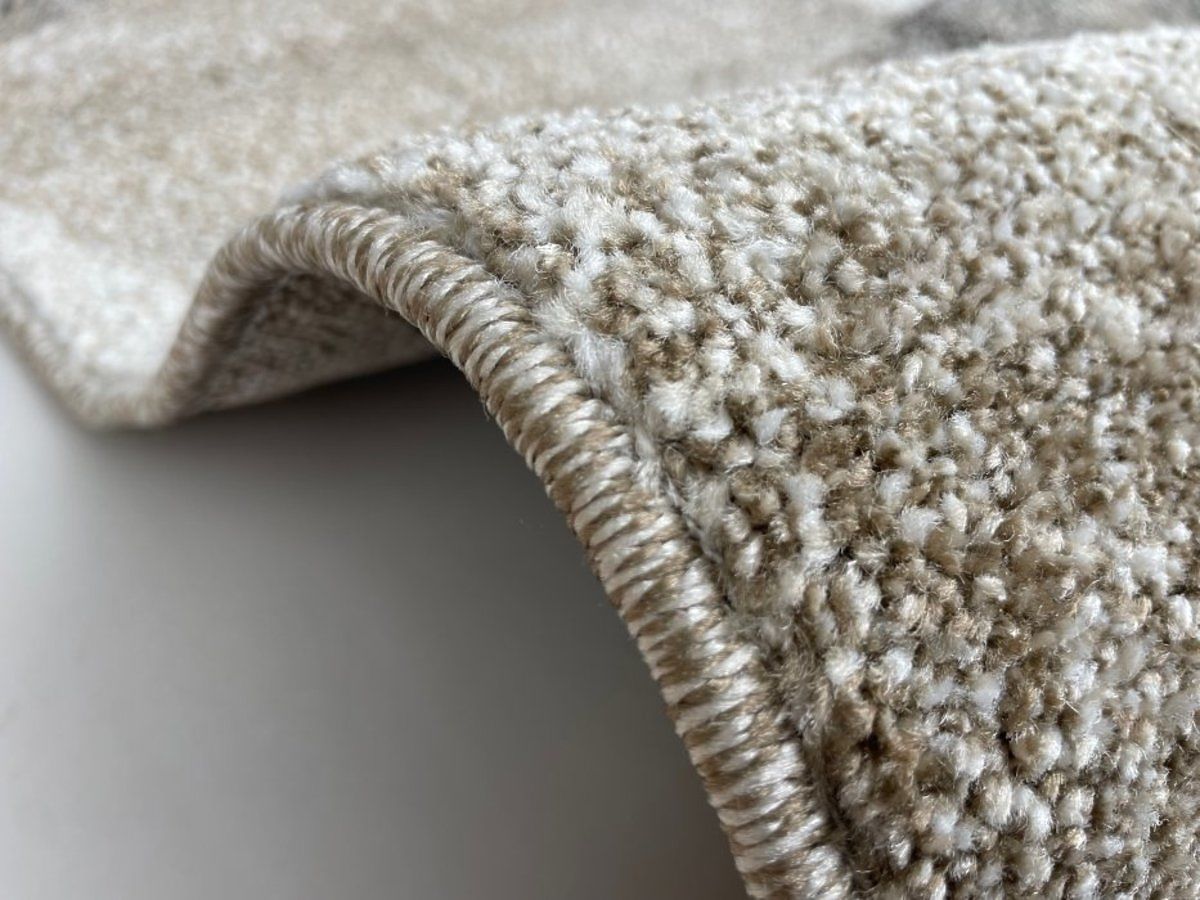 Die Aspect-Teppiche im Beigeton bestehen zu 100 % aus Polypropylenfasern vom Frisé-Typ, was eine angenehme Oberfläche garantiert. Sein dichtes Haar ist 12 mm hoch. Er ist mit einer antistatischen Behandlung und Chemlon-Nähten in der gleichen Farbe wie der Teppich ausgestattet.