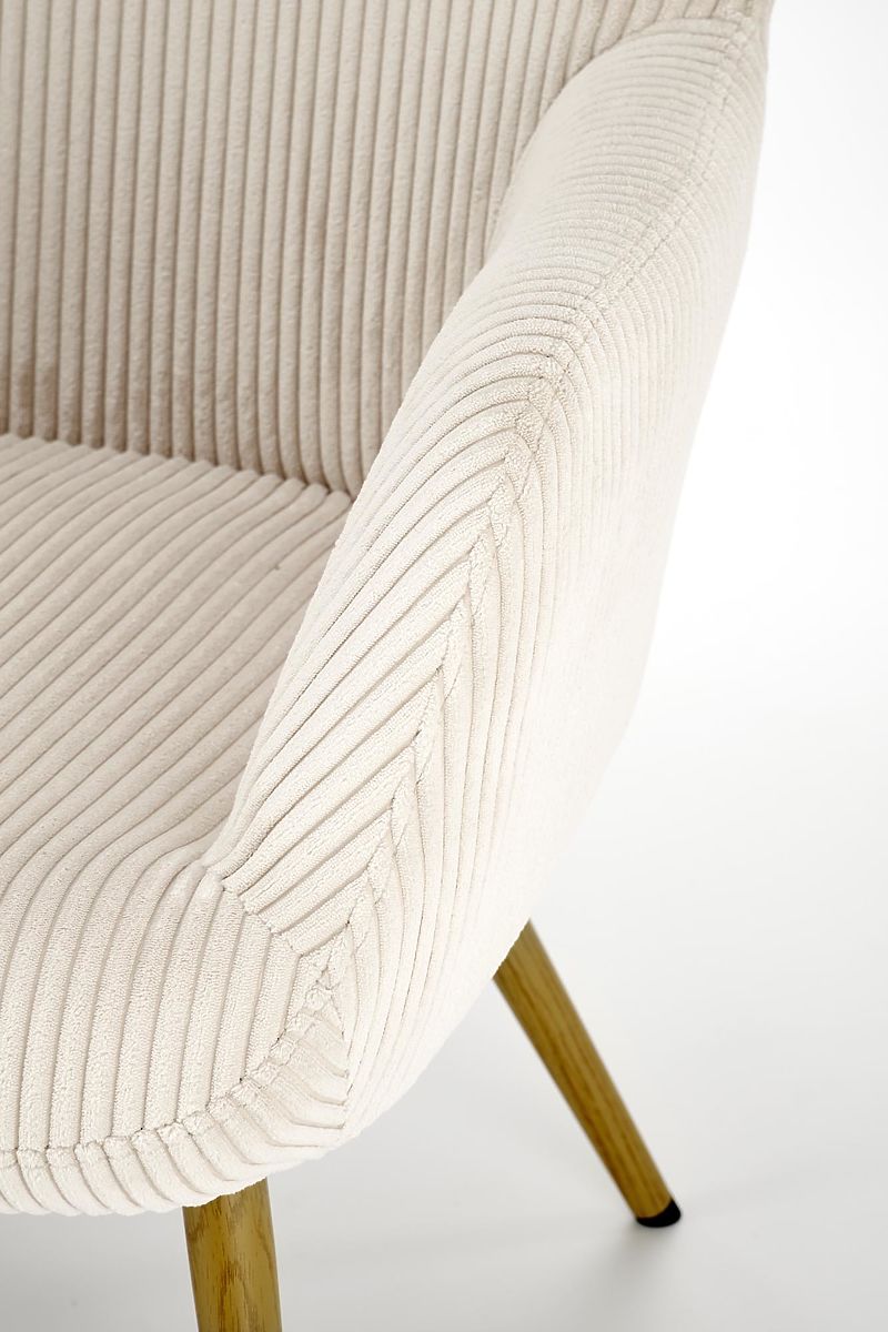 Cremefarbener Cord verleiht dem Stuhl ein weiches und zugleich edles Aussehen. Dieser Stoff fühlt sich nicht nur angenehm an, sondern ist auch langlebig und pflegeleicht und sorgt so für eine lange Lebensdauer Ihres Stuhls.
