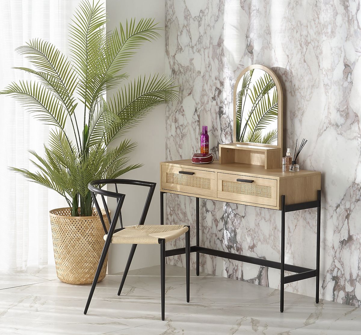 Kosmetiktisch Carmen aus natürlichem Rattan, der nicht nur Funktionalität, sondern auch ein einzigartiges ästhetisches Erlebnis in Ihren Schönheitsraum bringt.