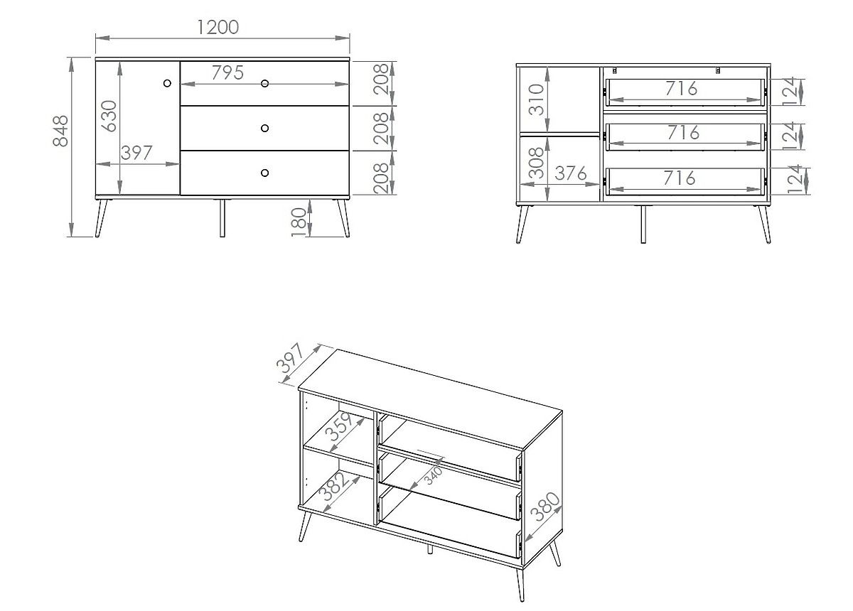 Bereichern Sie Ihr Interieur mit einem einzigartigen Möbelstück in Form einer kleineren Forest-Kommode , die einen schlichten, minimalistischen Eindruck macht, .. mehr