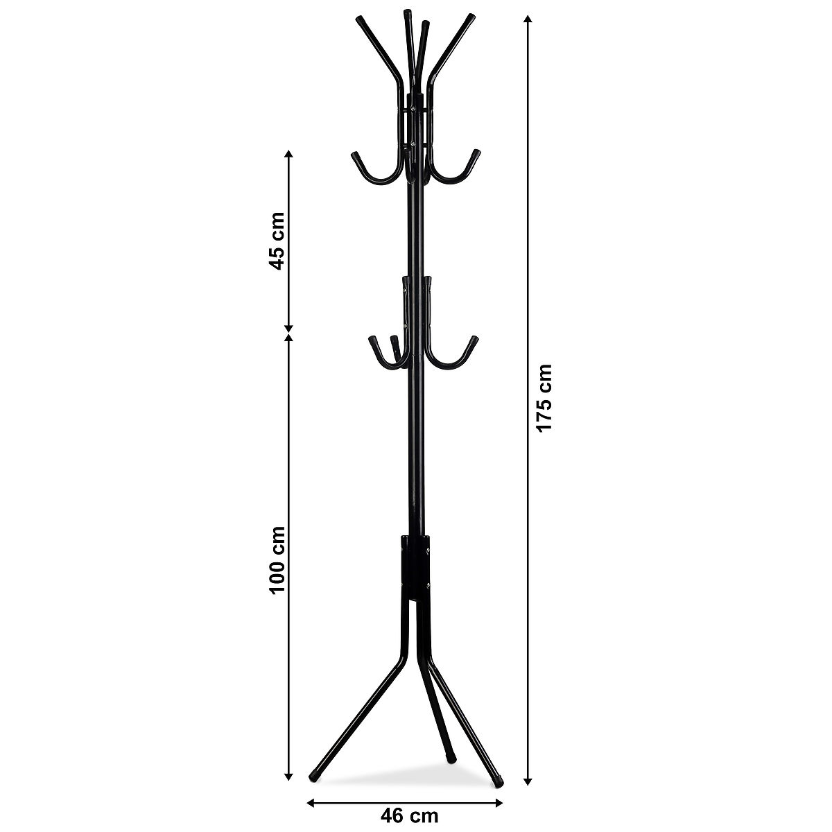 VIEL PLATZ FÜR KLEIDUNGOben befinden sich vier Arme, an denen zwei Mäntel aufgehängt werden können. In der Mitte der Höhe befinden sich weitere Haken, die für Hüte, Regenschirme oder Taschen geeignet sind.