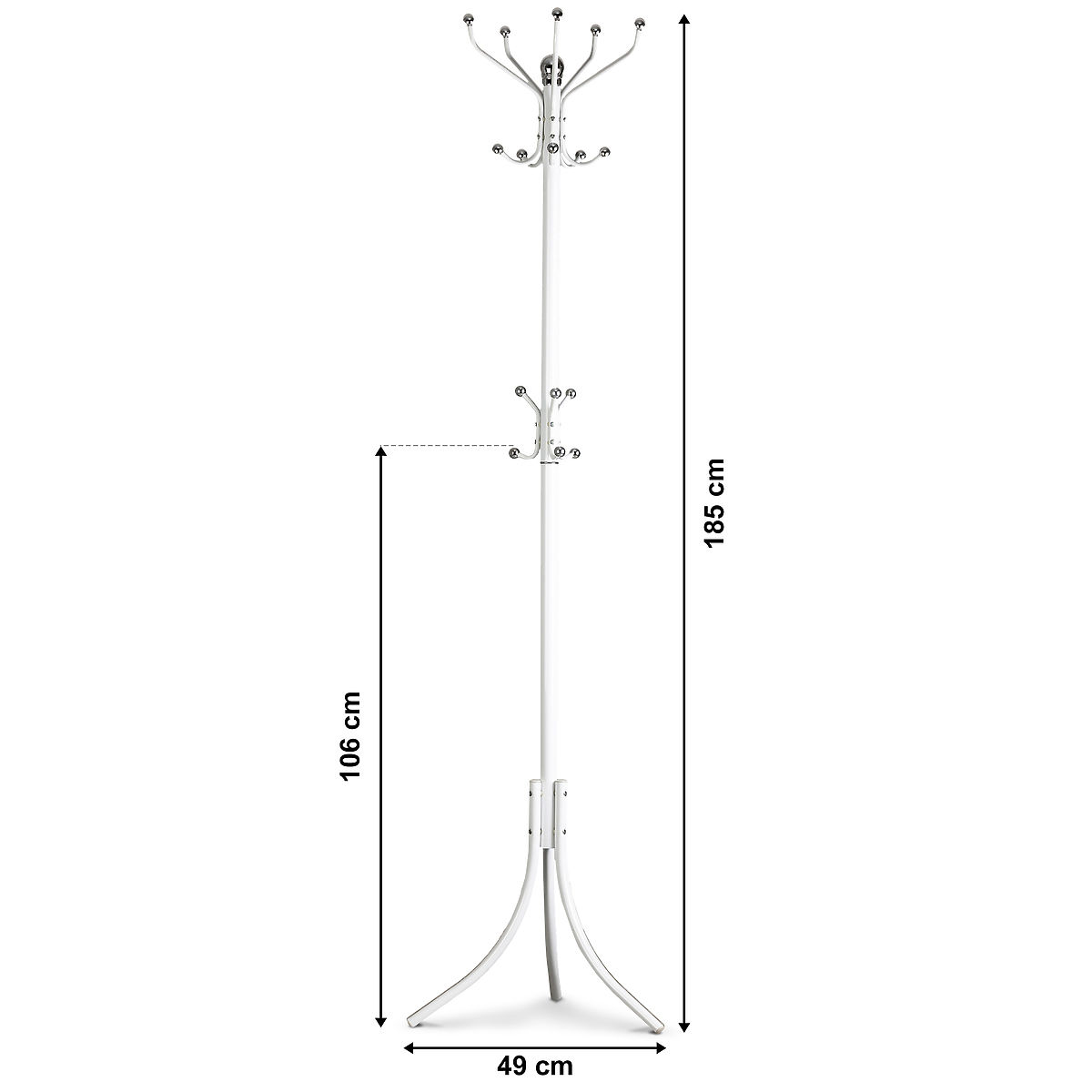 KLEIDERSTÄNDER ModernHomeDer Ständer hat oben fünf Arme, an jedem zwei Plätze zum Aufhängen von Kleidung. In der Mitte des Ständers befinden sich drei weitere, kleine Arme zum Aufhängen von Handtaschen, Regenschirmen und kleineren Kleidungsstücken. Dank der speziellen dreifachen Basis bleibt der Ständer auch bei hoher Belastung stabil.