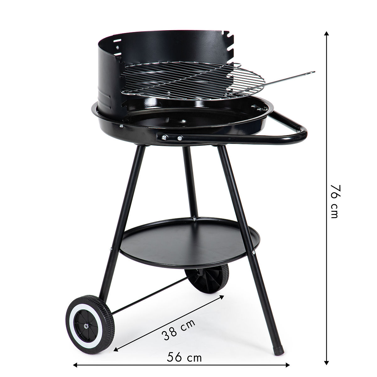 Runder Gartengrill mit verstellbarem Rost und stabilem Metallrahmen. .. mehr