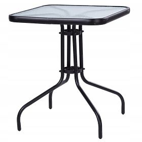 GUT ENTWORFENER GARTENTISCHDie quadratische Platte mit den Maßen 60x60 cm bietet Platz für 4 Personen, die ihre Getränke bequem abstellen oder sogar essen können. Die Metallkonstruktion gewährleistet Stabilität und die gehärtete Glasplatte sorgt dafür, dass der Tisch auch bei hoher Belastung langlebig und sicher ist.