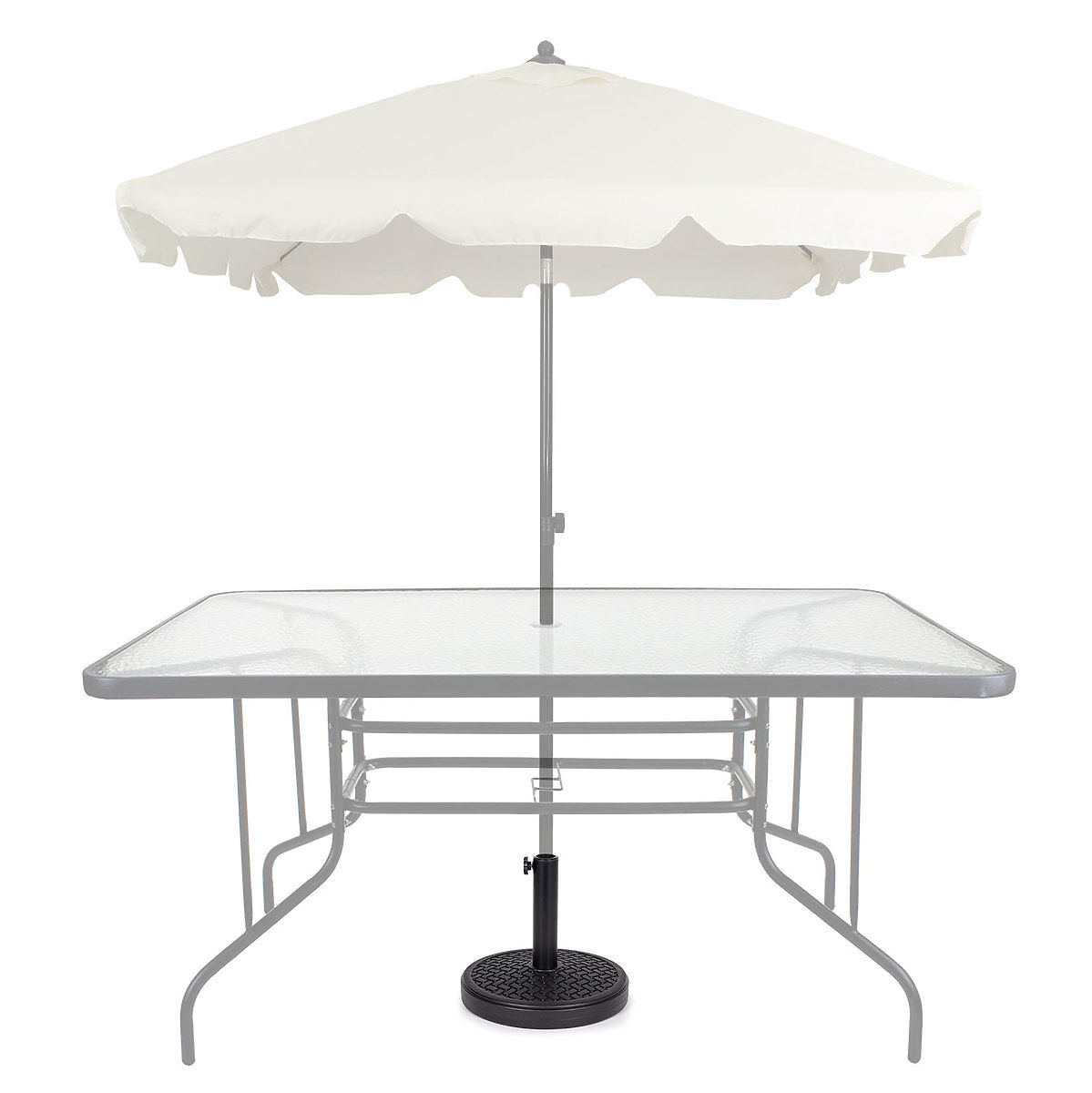 Die Belastung bewährt sich in jedem Garten, auf der Terrasse und überall dort, wo Sie einen Schirm aufstellen möchten. Sie ist mit Schotter gefüllt und hält den Schirm problemlos in aufrechter Position.