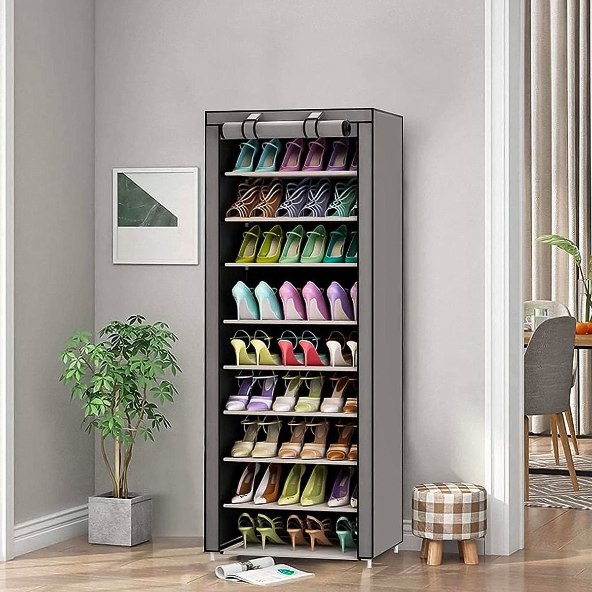 Multifunktionaler Textilschrank mit 9 Regalen für Kleidung und Schuhe. .. mehr