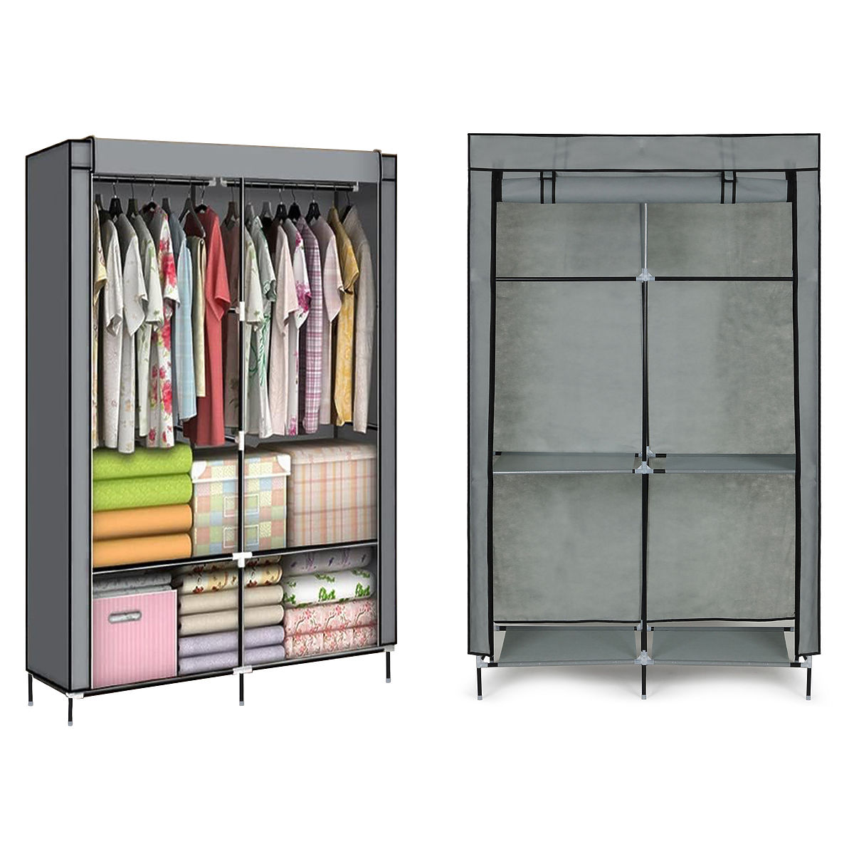 Großer Textilschrank mit Regalen und Kleiderstangen für Kleidung und Schuhe. .. mehr