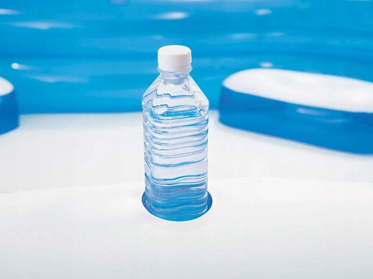 Der Pool besteht aus PVC-Material, hat eine angenehme Farbgebung und Sitze mit Rückenlehnen in jeder der vier Ecken - die ideale Wahl für Entspannung für Sie und Ihre Familie.