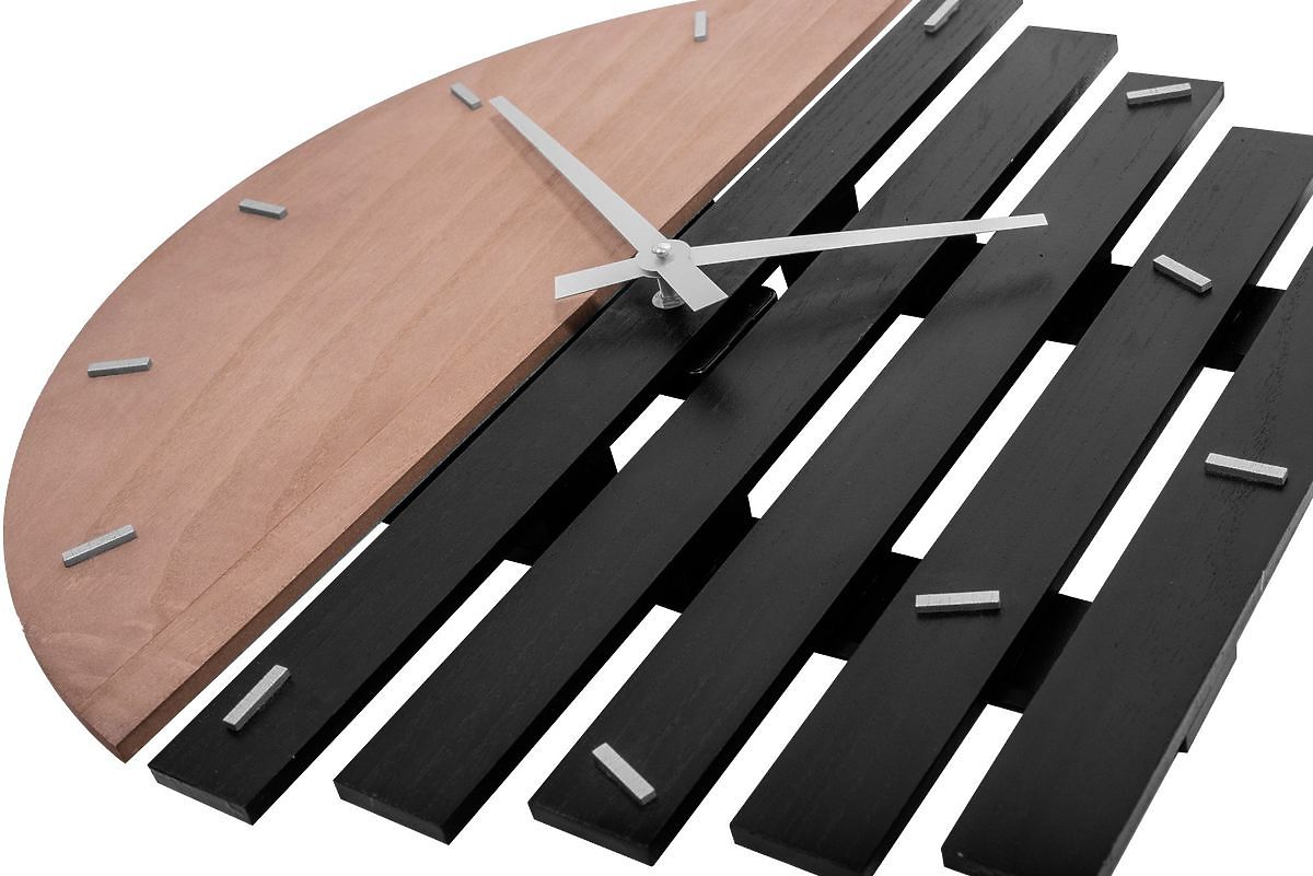 Stilvolle Wanduhr mit unkonventionellem Design ist das perfekte Accessoire, das sofort auffällt und Ihrem Interieur einen außergewöhnlichen Charakter verleiht. Die Uhr kombiniert natürliches Holzmaterial mit einem raffinierten schwarzen Look. Mit ihrer ungewöhnlichen Form wird sie zum Mittelpunkt jedes Raumes, in dem Sie sie platzieren.