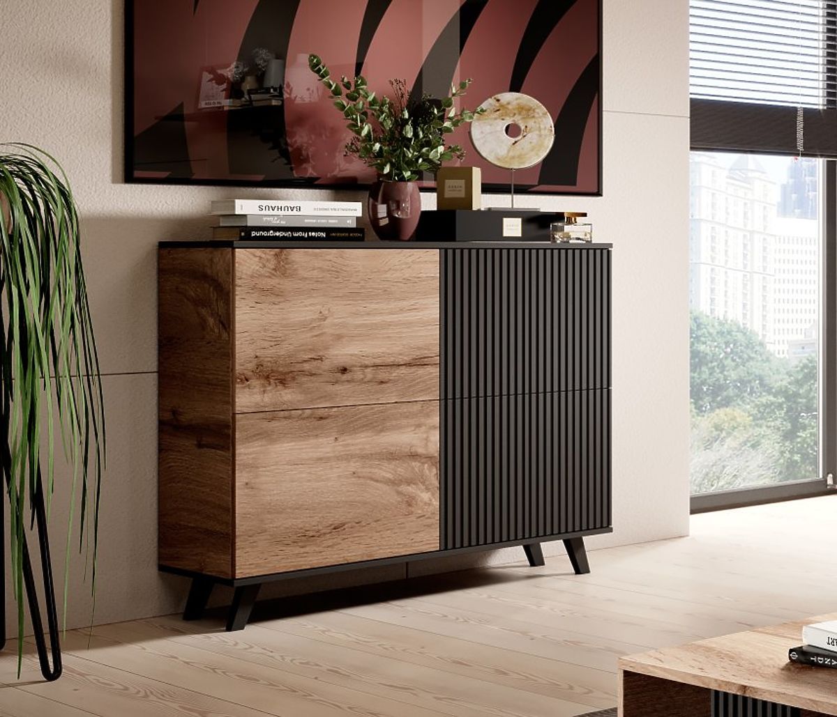 Die Kommode Wotan Eiche - Schwarz ist eine ausgezeichnete Wahl für alle, die eine Kombination aus modernem Design und praktischem Stauraum suchen. Ihre hochwertige Verarbeitung und ihr stilvolles Aussehen machen sie zu einer idealen Ergänzung für Ihr Zuhause.