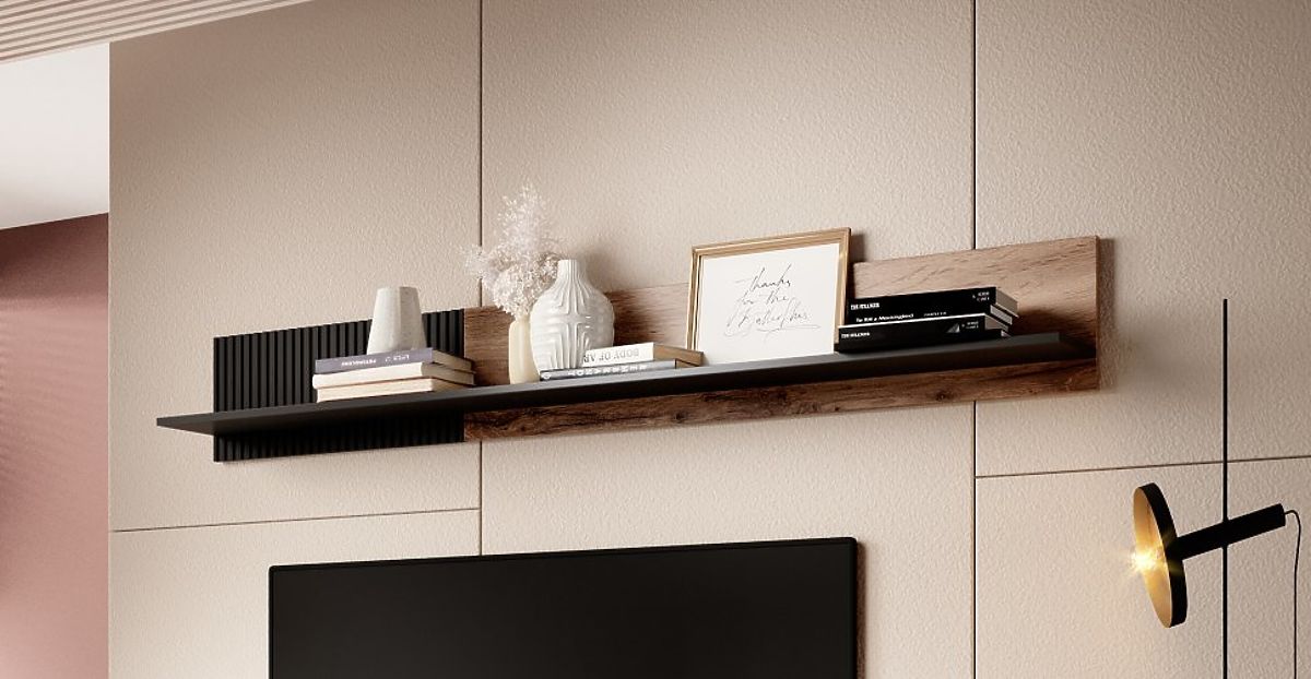 Stilvolles Wandregal, ideal zum Ausstellen Ihrer Dekorationen, Bücher oder anderer Gegenstände. Ihr modernes Design und hochwertige Materialien machen es zu einem praktischen und eleganten Accessoire für jedes Interieur.