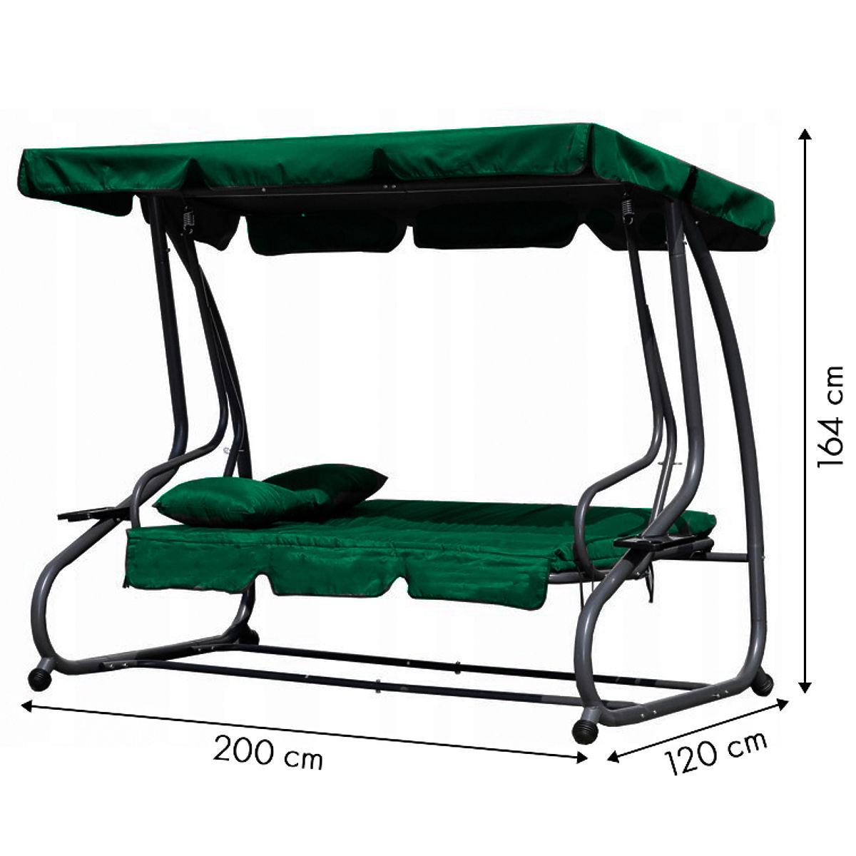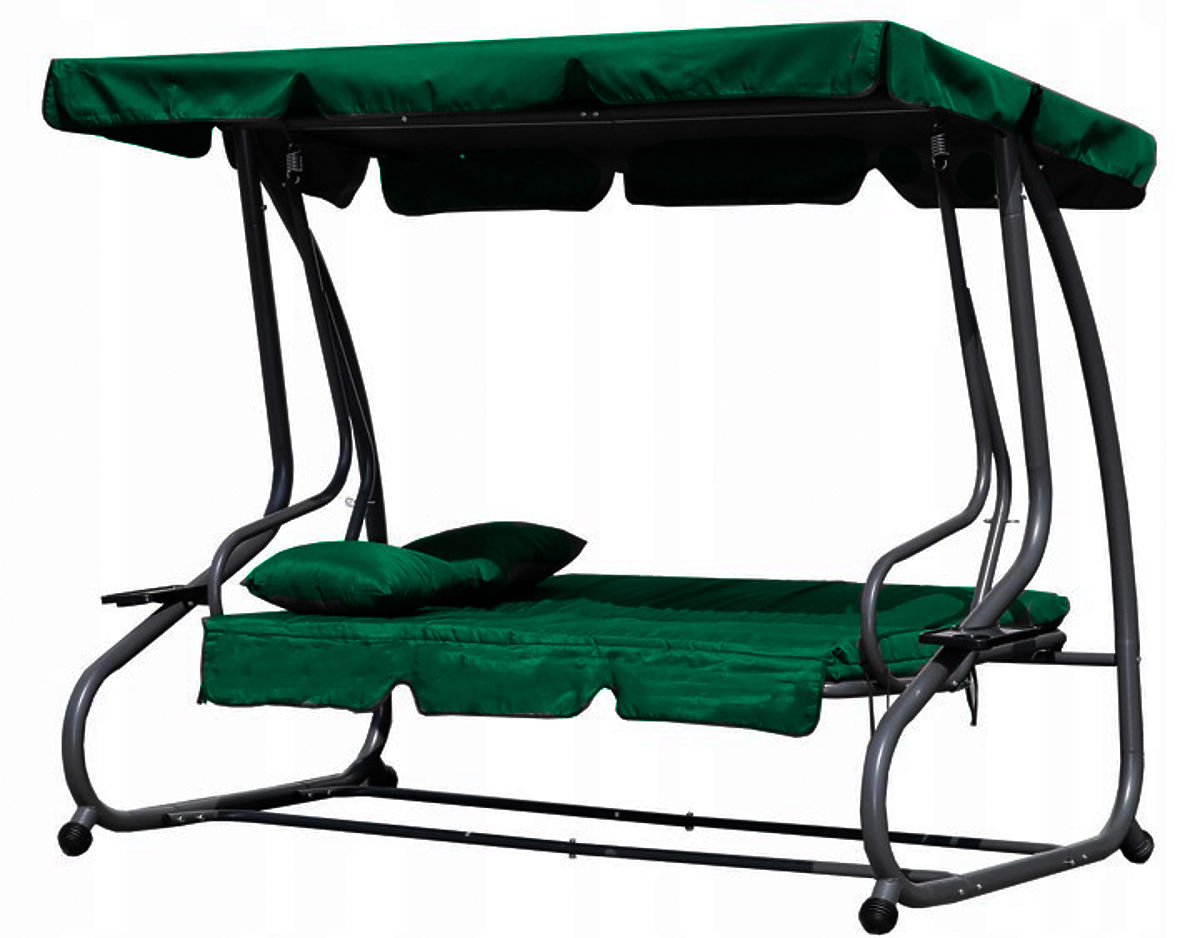 ALLES GUT DURCHDACHTDie Gartenschaukel ist mit einem großen verstellbaren Dach ausgestattet, das uns vor schädlichen UV-Strahlen schützt und an heißen Tagen angenehmen Schatten spendet. Die bequeme weiche Matratze mit einer Dicke von 8 cm und die zwei mitgelieferten Kissen machen die Erholung zu jeder Zeit angenehm. Dank der Möglichkeit, die Schaukel schnell in eine Liege zu verwandeln, können wir sie genau an unsere Bedürfnisse anpassen.