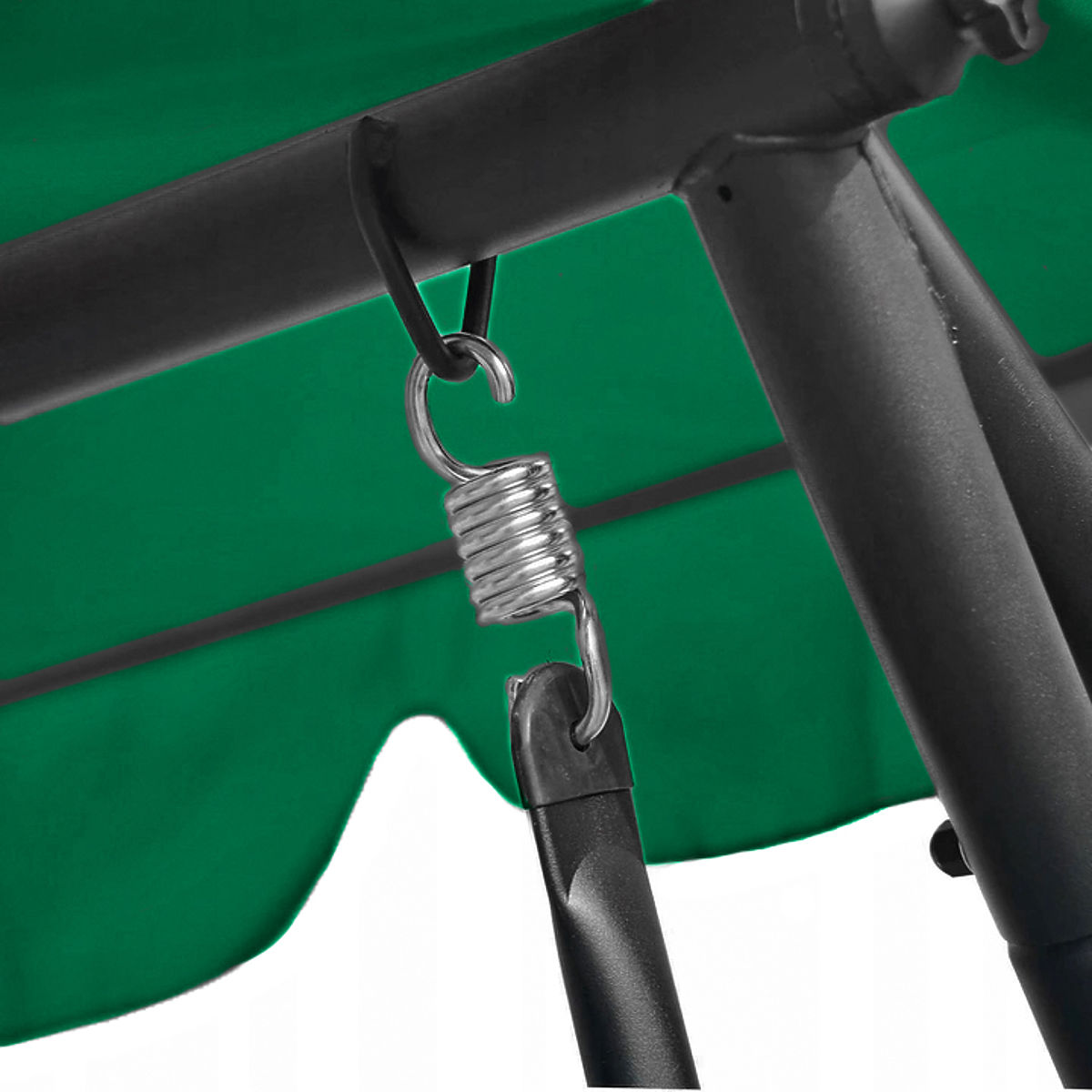 Die gesamte Schaukel besteht aus robustem Stahl, der pulverbeschichtet ist, und an den Ecken der Basis befinden sich Plastikschutzvorrichtungen, die beim Schaukeln für Stabilität sorgen.