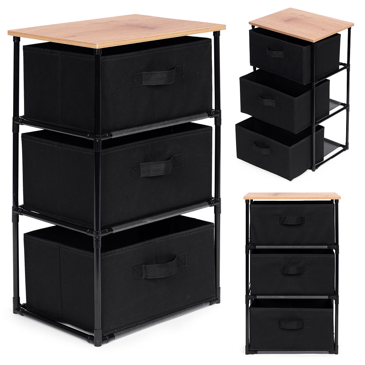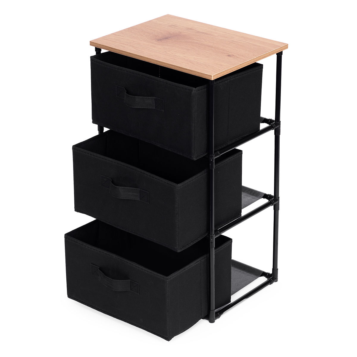 Luka-home.de » Badezimmer und Toilette / Badezimmeraccessoires / Textilschrank Regal Organizer mit herausnehmbaren Körben 3 Ebenen Loft Schwarz ModernHome