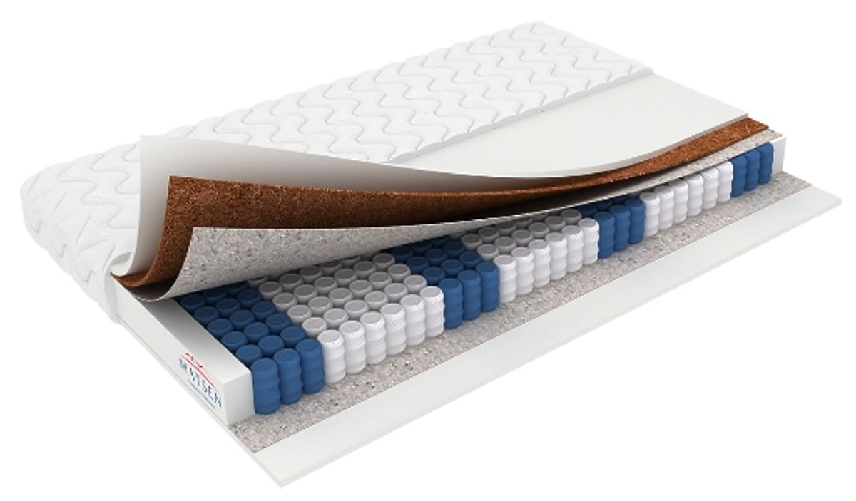 Die Matratze Verona ist eine 7-Zonen-Taschenfederkernmatratze mit einer Kokosschicht, die die Festigkeit und Stabilität der Konstruktion erhöht. Dank der beidseitigen Ausführung können Sie je nach Ihren Vorlieben zwischen einer weicheren oder härteren Seite wählen. Die Kokosplatte hilft, die Matratze zu verstärken, verbessert ihre Widerstandsfähigkeit gegen Verformungen und verlängert die Lebensdauer. Die Konstruktion sorgt für eine gute Luftzirkulation und komfortable Körperunterstützung während des Schlafs.