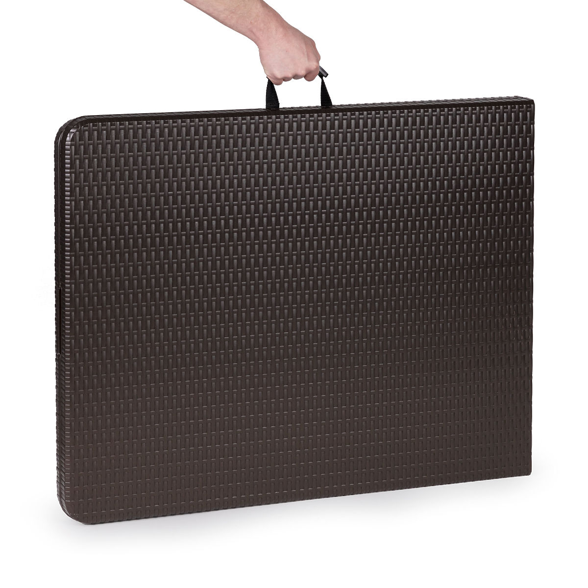 KOMFORTABLES KLAPPSYSTEMDank des speziellen Klappsystems kann der Tisch zu einem Koffer zusammengeklappt werden und das Zusammenklappen dauert nur 20 Sekunden. Diese Funktion ermöglicht eine einfache Lagerung des Tisches, er ist auch für Reisen und Picknicks im Freien geeignet.