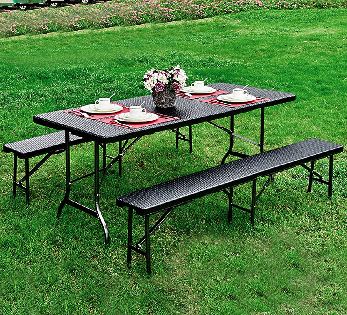 Luka-home.de » Gartenmöbel / Garten tische / Klappbarer Catering-Gartenbankettisch 180 cm Rattan ModernHome