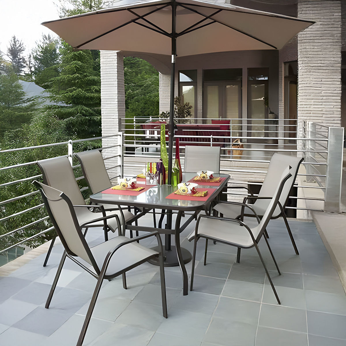 Luka-home.de » Gartenmöbel / Gartentische / Gartentisch 160x90 cm gehärtetes Glas große Platte für Terrasse Garten Sonnenschirmloch MultiGarden