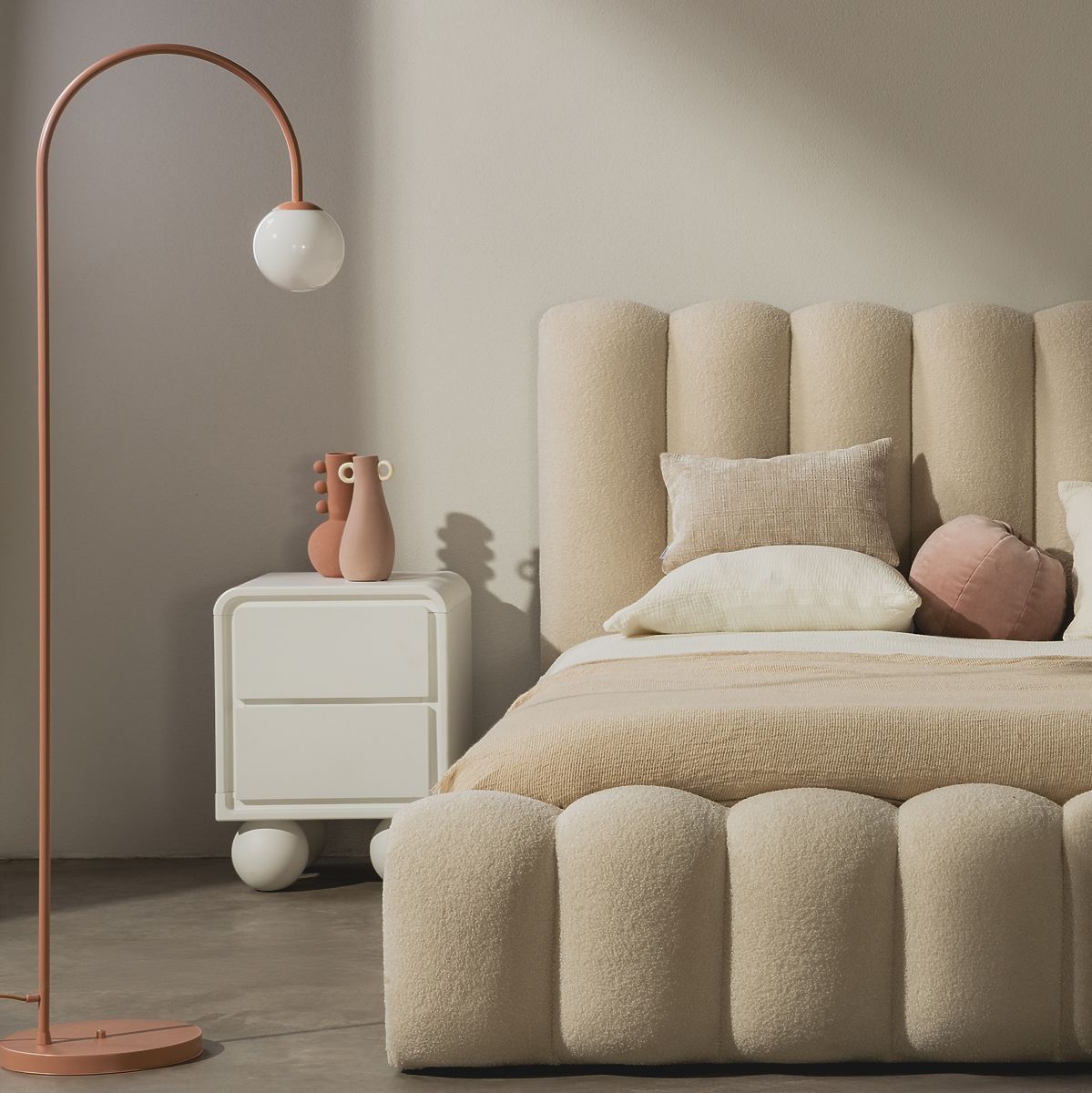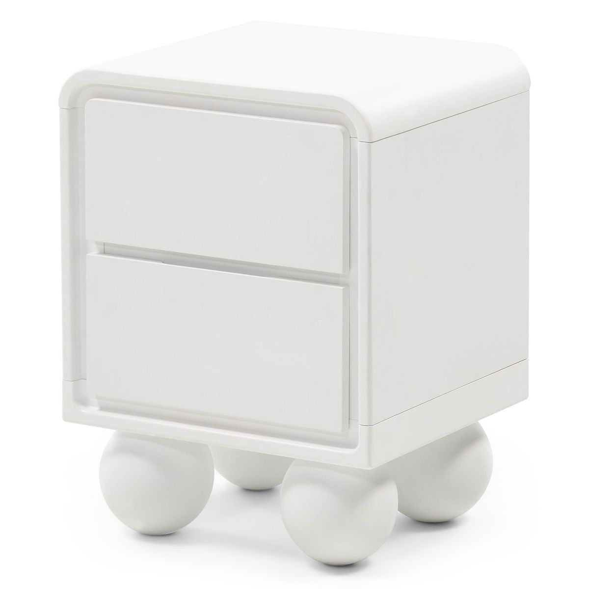 Luka-home.de » Tische und Couchtische / Nachttische / Nachttisch Lauria weiß, abgerundet, Kugelbeine