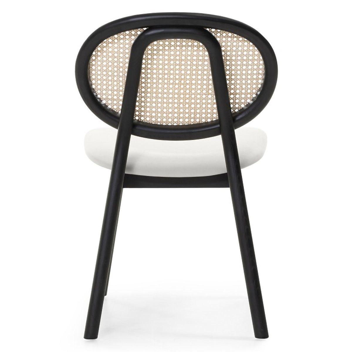 Schwarzer Holzstuhl Monet mit Wiener Rattangeflecht und Samtsitz in Ecru. .. mehr