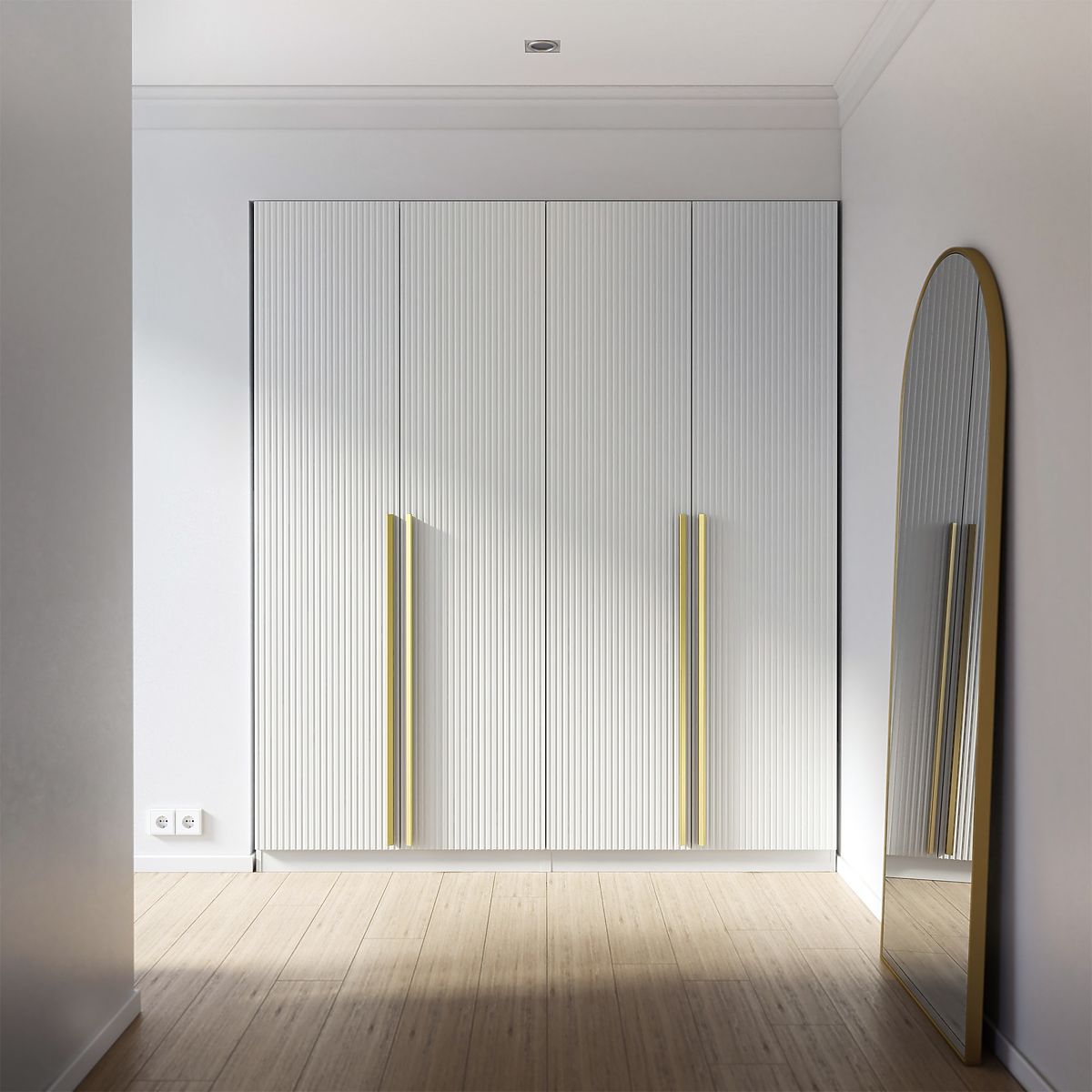 Schrank Neroli mit konfigurierbarem Innenraum und dekorativen Rillen. .. mehr