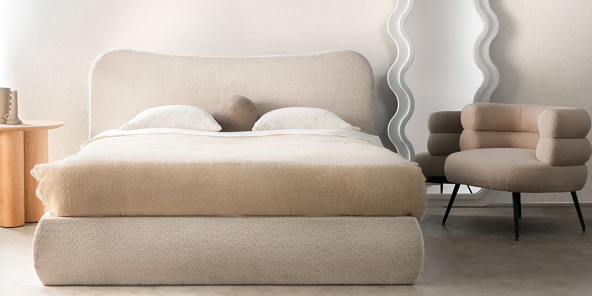 Gepolstertes Bett Derry mit Stauraum und abgerundetem Kopfteil. .. mehr