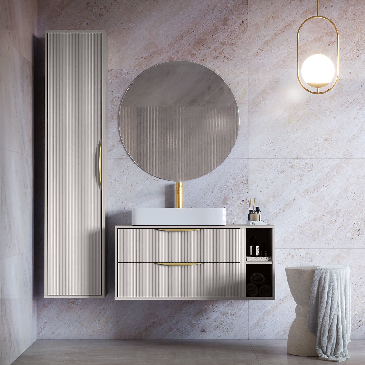 Luka-home.de » Bathroom & Toilet / Badezimmer schränke / Waschtischunterschrank Avila 2.0, 80 cm, geriffelt, goldene Griffe, Kaschmir