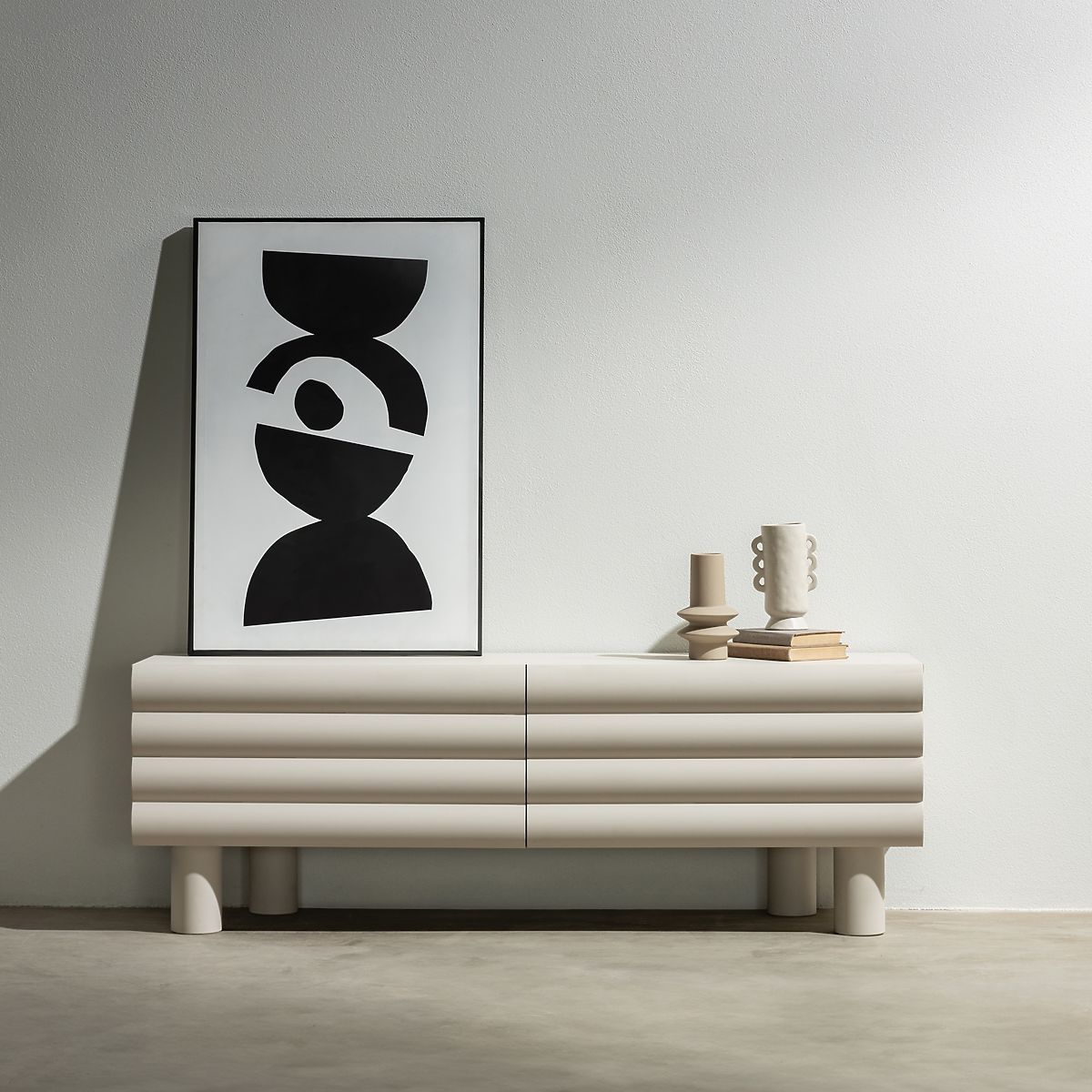 Luka-home.de » Tische und Couchtische / TV-Ständer / TV-Schrank Anatra, geriffelt, beige, abgerundete Formen
