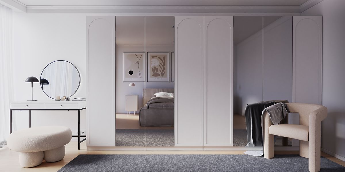 Dekorative Tür mit Bogeneinsatz und Push-to-Open-System. .. mehr