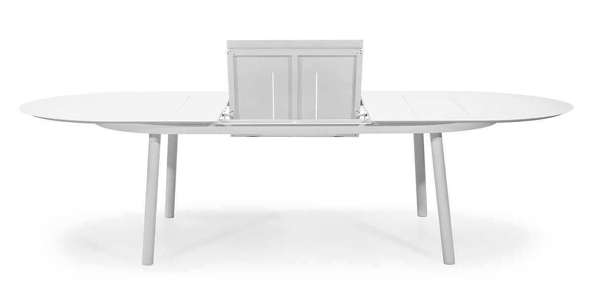 Ausziehbarer, ovaler Tisch aus pulverbeschichtetem Aluminium. .. mehr