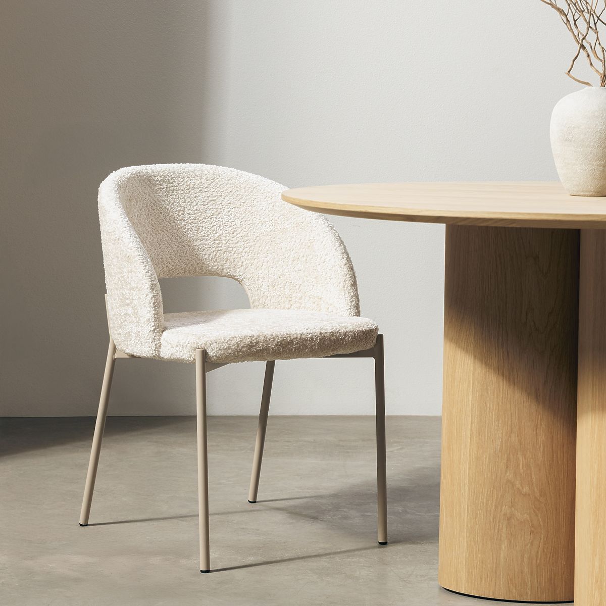 Stuhl Jazz mit hellbeigem Stoff und Öffnung in der Rückenlehne. .. mehr