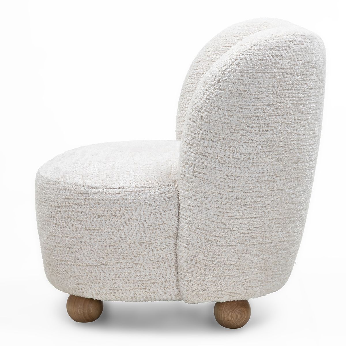 Runder Relaxsessel Monroe mit Kugelbeinen aus Eschenholz. .. mehr